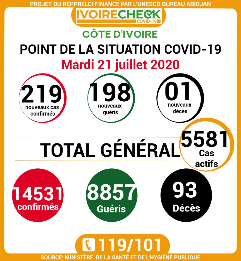 COVID -19: point de la situation de la maladie à coronavirus du 21 juillet 2020