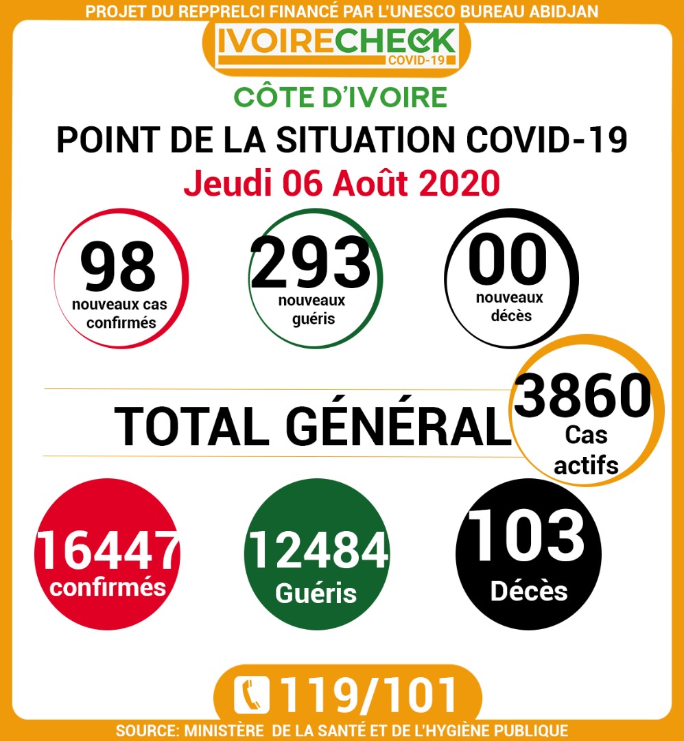 COVID -19: point de la situation de la maladie à coronavirus du 06 Août 2020