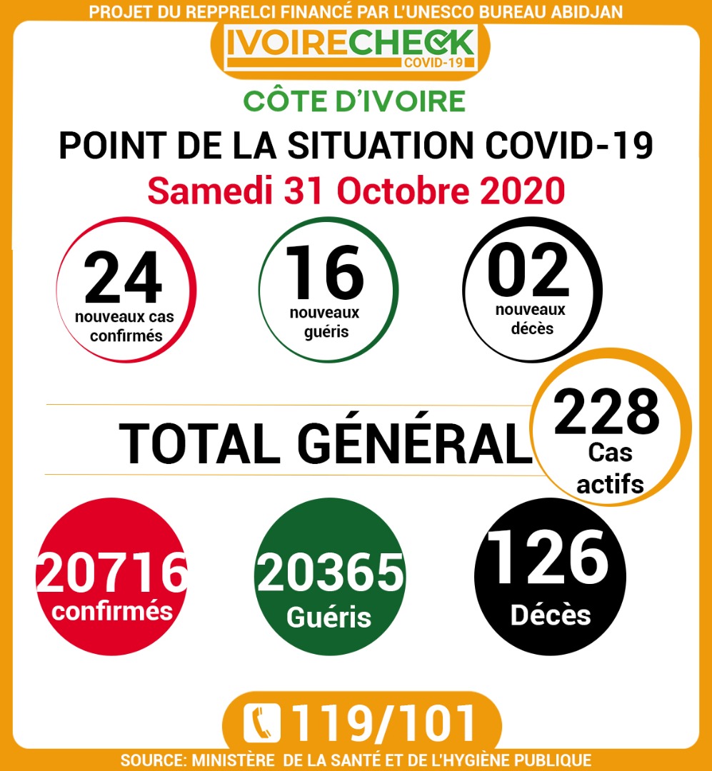 COVID-19: point de la situation de la maladie à coronavirus du 31 octobre 2020