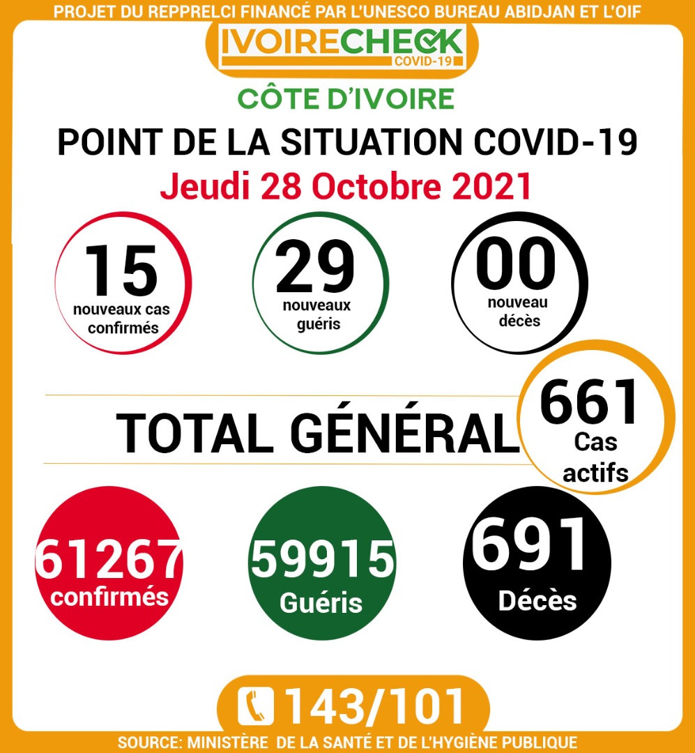 COVID-19: point de la situation de la maladie à coronavirus du 28 Octobre 2021
