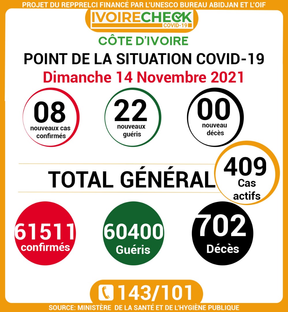COVID-19: point de la situation de la maladie à coronavirus du 14 Novembre 2021