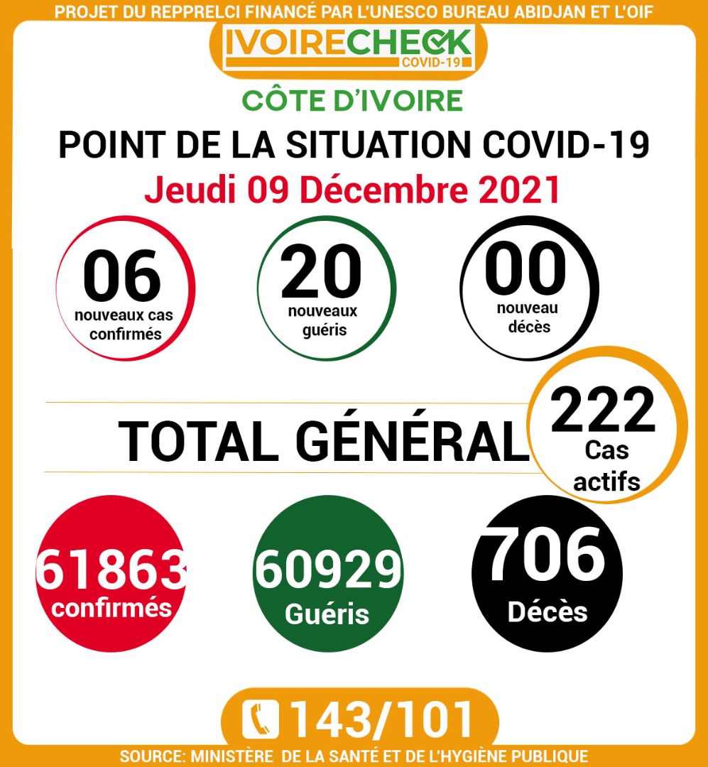 COVID-19: point de la situation de la maladie à coronavirus du 09 décembre 2021