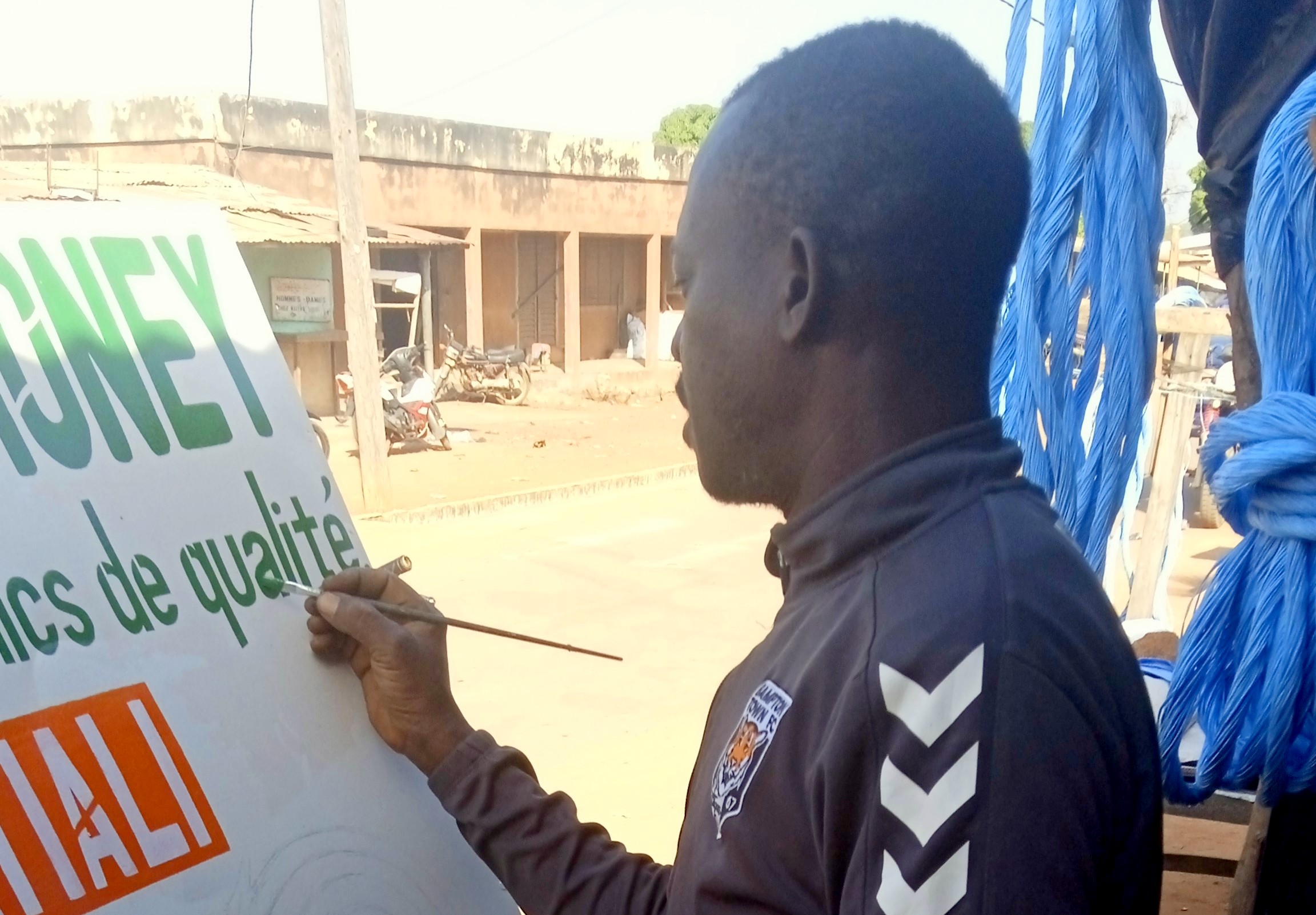 De Katiola, le futur calligraphe se retrouve à Sinematiali avec l’autre grand frère. Ce dernier aussi faisait les banderoles, les images sur les habits traditionnels, les t-shirts de sport, les murs et les magasins. Un don dans la famille. « Je n’aimais pas peintre. Mais j’ai remarqué que quand je faisais une toile les gens l’appréciaient mais moi je n’aimais pas le faire », affirme Nalougo. « Ce sont les filles qui m’ont poussé à faire la calligraphie. En fait quand on donnait une image à reproduire aux élèves dans le cours d’art plastique, les filles venaient me solliciter moyennant quelque jetons », se confesse Silué.