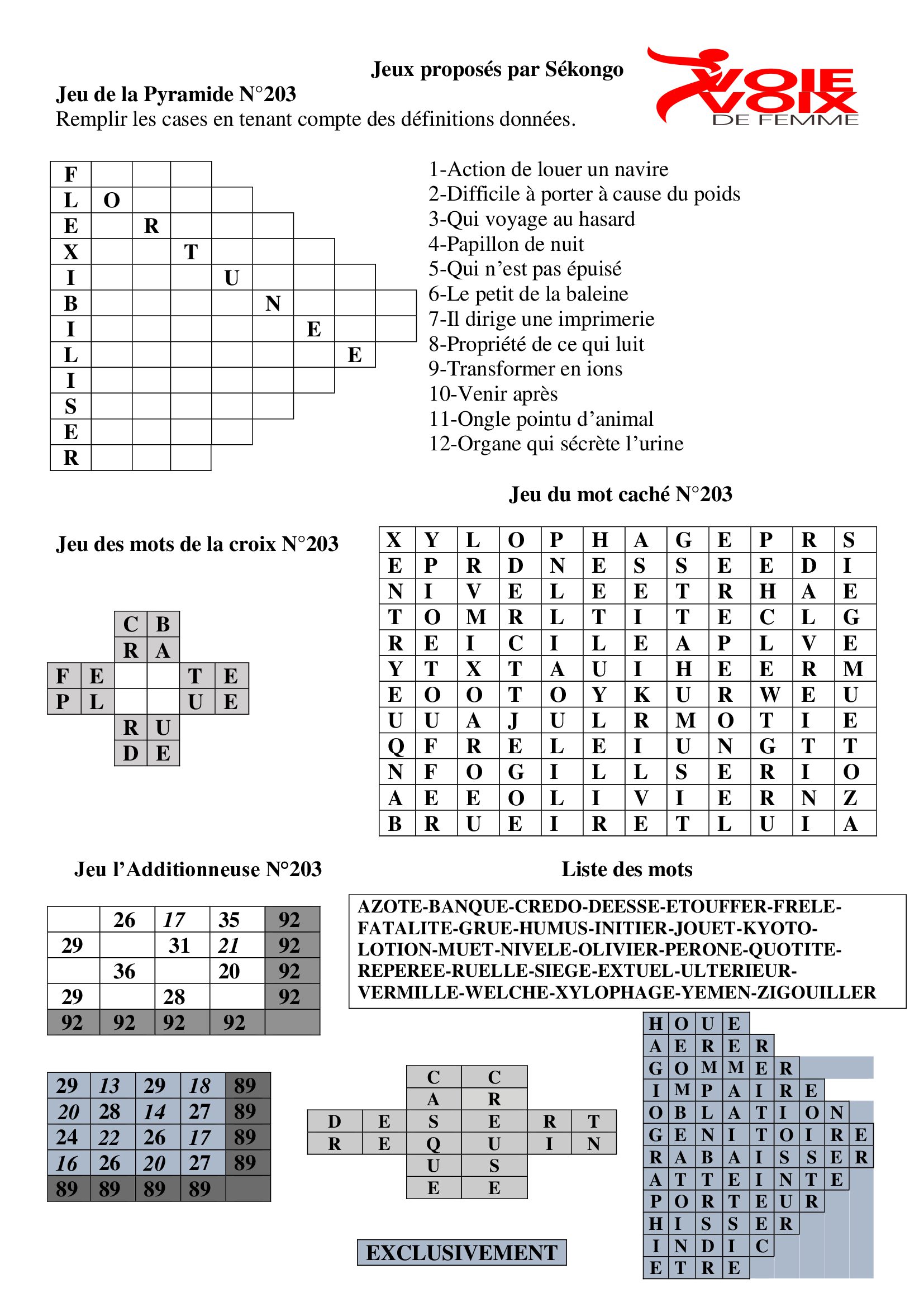 http://voiedefemme.net vous propose les jeux de Sékongo : Jeu de la Pyramide- Jeu du mot caché…