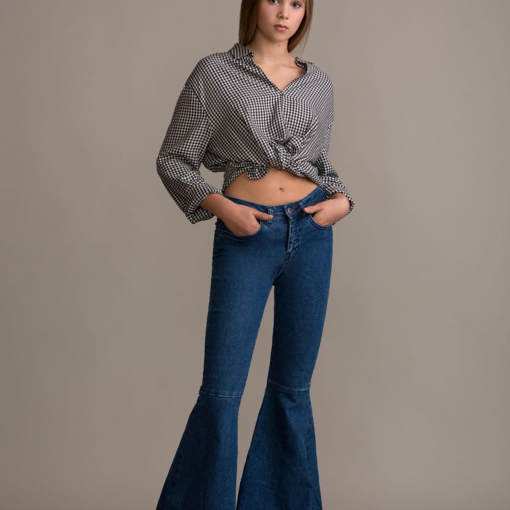 Aujourd’hui, vous pouvez trouver des versions du pantalon patte d’éléphant qui sont plus ajustées au niveau des hanches et des cuisses, puis s’évasant légèrement vers le bas. Cette coupe plus ajustée crée une silhouette plus équilibrée et élégante, tout en conservant l’essence de l’esthétique rétro.