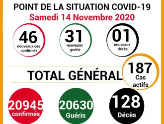 COVID-19: point de la situation de la maladie à coronavirus du 14 novembre 2020