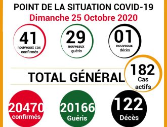 COVID-19: point de la situation de la maladie à coronavirus du 25 octobre 2020