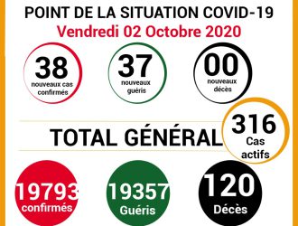 COVID-19: point de la situation de la maladie à coronavirus du 02 octobre 2020