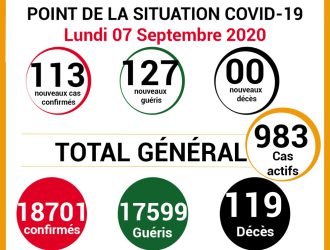 COVID-19: point de la situation de la maladie à coronavirus du 07 septembre 2020